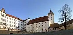 As one of the "Laufen Six", Reid was then sent to Colditz Castle, designated Oflag IV-C, a special "escape-proof" camp, arriving there on 10 November 1940. It was not long before Reid attempted an escape. He bribed a seemingly willing German guard to look the other way. On the night of 29 May 1941 twelve prisoners crawled through a sewer pipe from the canteen to an outer courtyard, planning to then descend a forty-foot wall, and then over another wall 12 feet high topped with barbed wire. However, although the guard had accepted the bribe, he also reported the escape plan to his superiors, and the Germans were waiting for them. After another spell in solitary, Reid accepted the position of Escape Officer, responsible for overseeing all British escape plans. Reid assisted in many escape attempts, some successful,[6] until April 1942, when he was replaced as Escape Officer by fellow member of the "Laufen Six" Captain Richard "Dick" Howe.[7]