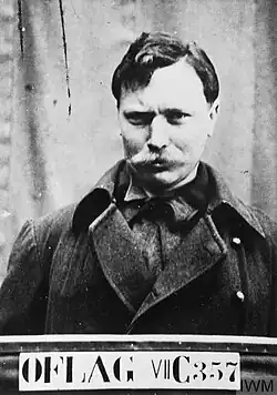 ![]() German identity photograph of Captain Pat Reid taken shortly before he was transferred to Colditz. | |