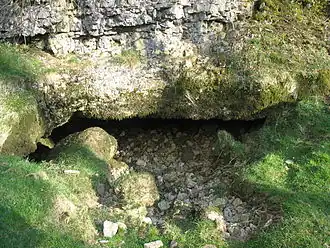 Pate Hole is a solutional cave located adjacent to Asby Gill 1 kilometre (0.62 mi) south of Great Asby in Cumbria, England. It is 970 metres (3,180 ft) long and has a vertical range of 33 metres (108 ft). The entrance is normally dry, but in flood it becomes an impressive resurgence.[1] Its name derives from the north country word for badger.[2]