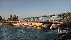 The Bhimgoda Barrage, also referred to as the Bhimgoda Weir or Bhimgoda Head Works, is a barrage on the Ganges River at Har ki Pauri near Haridwar in Haridwar district, Uttarakhand, India. Built as the headworks of the Upper Ganges Canal, an initial barrage was completed by 1854 and replaced twice; the final one completed in 1983. The primary purpose for the barrage is irrigation but it also serves to provide water for hydroelectric power production and control floods. The area behind the barrage is known as the Neel Dhara Bird Sanctuary and is a popular destination for various waterbirds and tourists.
