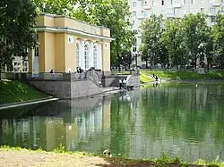 Patriarch's Ponds (Russian: Патриаршие пруды, romanized: Patriarshiye prudy) is a park, pond and an affluent residential area in downtown Presnensky District of Moscow, Russia. For the last 200 years, there has been only one pond, although, as the name of Tryokhprudny Pereulok (Трёхпрудный переулок, lit. Three-Pond Lane) suggests, there used to be more. The area of the existing pond is 9,900 square metres (107,000 sq ft); the depth is about two meters.