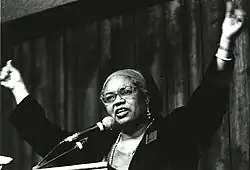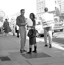 Patricia Stephens Due (December 9, 1939 – February 7, 2012)[1][2] was one of the leading African-American civil rights activists in her home state of Florida. Along with her sister Priscilla[3] and others trained in nonviolent protest by CORE, Due spent 49 days in one of the nation's first jail-ins, refusing to pay a fine for sitting in a Woolworth's "White only" lunch counter in Tallahassee, Florida in 1960.[4] Her eyes were damaged from tear gas used by police on students protesting such arrests, so she wore dark glasses for the rest of her life.[5] She served in many leadership roles in CORE and the NAACP, fighting against segregated stores, buses, theaters, schools, restaurants, and hotels, protesting unjust laws, and leading one of the most dangerous voter registration efforts in the country in northern Florida in the 1960s.[6]
