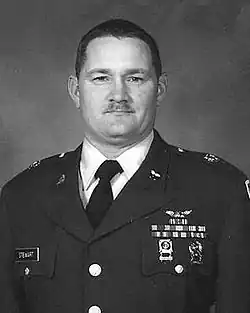 Patrick Dana Stewart (October 21, 1970 – September 25, 2005) was a soldier in the United States Army. He died in combat in Afghanistan when his Chinook helicopter was shot down by a rocket-propelled grenade while returning to base. Patrick Stewart was a resident of Fernley, Nevada, United States and a practicing Wiccan.
