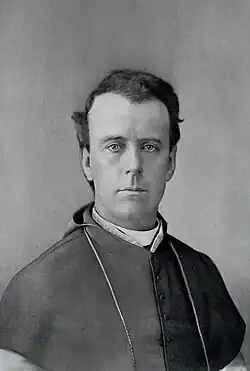 As pastor of St. James, Riordan erected a new church building on Wabash Avenue to accommodate his growing congregation, laying the cornerstone in 1876 and dedicating the building in 1880.[8] His cousin, Rev. Patrick W. Dunne, later served as pastor of St. James (1911–1927) after beginning his priestly ministry at St. Mary's Church in Joliet, where Riordan had also served.[19] Riordan's construction of the new church caught the attention of several bishops, and in 1882 his name was included on a list of three candidates for Bishop of Charleston, South Carolina, being the preferred choice of Archbishop James Gibbons of Baltimore.[20] Although the Charleston appointment ultimately went to Henry P. Northrop, Riordan would receive his own appointment as a bishop the following year.