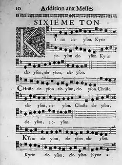 - Six messes en plein chant musical propres pour toutes les personnes qui chantent l'office divin... Paris: Christophe Ballard, 1701. 2°, 46 p., noted plainsong.