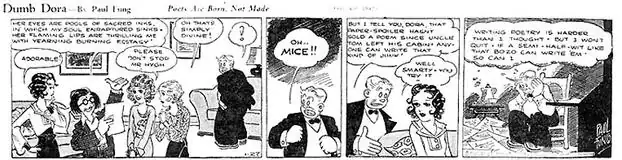 When creator Chic Young left Dumb Dora and its topper panel When Mother Was a Girl to launch Blondie, Fung became his replacement in April 1930. After two years on Dumb Dora, Fung turned it over to Bil Dwyer in 1932. Interviewed by Will Eisner, Milton Caniff recalled: