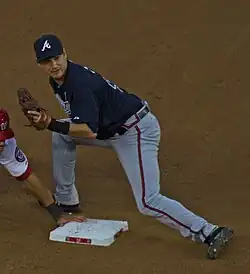 On July 14, he was traded to the Atlanta Braves for Todd Redmond, in order to replace the injured Andrelton Simmons.[12] On July 20, Janish hit the game-winning RBI in the Braves' 11–10 win over the Washington Nationals, a game in which the Braves had rallied from a 9–0 deficit.[13] In September, Janish suffered a left labrum injury, resulting in surgery. Janish signed a one-year contract to stay at the Braves without going through arbitration.[14]