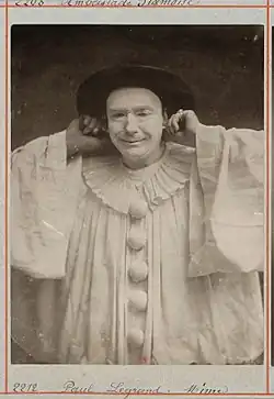 Paul Legrand (French pronunciation: [pɔl ləɡʁɑ̃]; January 4, 1816 – April 16, 1898), born Charles-Dominique-Martin Legrand, was a highly regarded and influential French mime who turned the Pierrot of his predecessor, Jean-Gaspard Deburau, into the tearful, sentimental character that is most familiar to post-19th-century admirers of the figure. He was the first of the Parisian mimes of his era (the second was Deburau fils) to take his art abroad—to London, in late 1847, for a holiday engagement at the Adelphi[1]—and, after triumphs in mid-century Paris at the Folies-Nouvelles, he entertained audiences in Cairo and Rio de Janeiro. In the last years of the century, he was a member of the Cercle Funambulesque, a theatrical society that promoted work, especially pantomime, inspired by the commedia dell'arte, past and present. The year of his death coincided with the last year of the Cercle's existence.