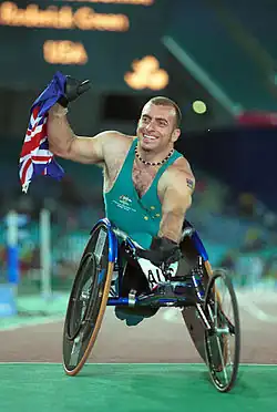 ![]() An elated Nunnari holds up the Australian flag at the 2000 Summer Paralympics | ||||||||||||