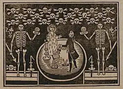 Phylidor referenced Johann Georg Schröpfer and Cagliostro in several advertisements.[22] In the early 1770s Johann Georg Schröpfer had performed Masonic necromantic rituals and experiments, raising ghosts that were probably created with many hidden techniques including magic lantern projections on smoke.[25] Soon after Schröpfer's death there was a boom of publications either attacking or defending his supposed supernatural abilities, expanding Schröpfer's fame across Europe. Several publications included explanations of techniques he might have used to conjure apparitions, which inspired several people to try to recreate Schrepfer's séances.[16] Cagliostro was thought to have performed similar séances.