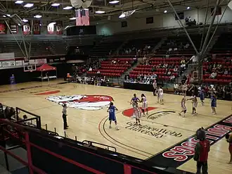 Paul Porter Arena is a 3,500-seat multi-purpose arena in Boiling Springs, North Carolina. It is home to the Gardner-Webb University Runnin' Bulldogs, of the Big South Conference.[1][2] The Arena was named in honor of Paul B. Porter who was a Board of Advisors Honorary Member and Lifetime Member. The arena is part of the Lutz Yelton Convocation Center (LYCC) a project that was completed in 1982 which houses the Dover Theater and Paul Porter Arena.[3][4] Although primarily used for basketball and volleyball athletic events, the arena is also used for graduation ceremonies, orientation and the weekly dimensions program. The seating plan in the arena can also be altered, as all of the red seats can be folded and pushed back allowing for greater floor space. Additional floor seating can also be added for events such as graduation or orientation.