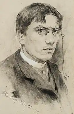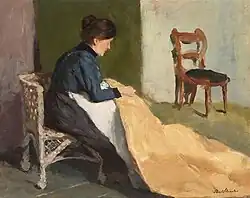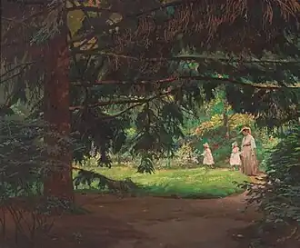From there, he transferred to the Academy of Fine Arts, Munich, and joined the Allgemeine Deutsche Kunstgenossenschaft. He remained there for a few years, becoming a member of the Munich Secession, and participating in their first exhibition of 1893.[2] This was followed by study trips to Holland, Belgium and Spain and, for a short time, he was a resident of the Willingshausen Artists' Colony. In 1895, he was awarded a large gold medal at the Große Berliner Kunstausstellung.