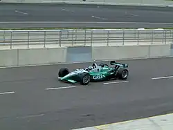 In May, he made his IRL debut in the 2002 Indianapolis 500 driving Team Green's No. 26 Dallara IR-02-Chevorlet entry after Green wanted to enter the event.[7][35] Starting from 29th,[35] he was running in second with one-and-a-half laps to go when he overtook Penske driver Hélio Castroneves just as the yellow caution flag light came on for a two-car accident between Buddy Lazier and Laurent Redon. IRL officials' rejected an appeal from Tracy's team, and awarded the victory to Castroneves.[112] Tracy has since maintained that he won the race.[113]