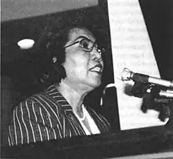 Paula Bataona Renyaan giving a speech about the taxation bill in 1997.