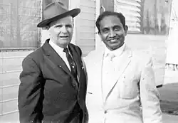 In August 1942, when the national leaders launched the Quit India Movement, he organized a big student strike in his college. The police attempted to apprehend him, but he managed to escape to Ceylon where, soon after arrival, he got a job in one of the tea estates as a stenographer.[2] Around this time Paulaseer began to read political and religious works and to have visions. In 1946, he went to India on a short holiday. While going with his mother to a friend's house, he saw everything according to the dreams he had had about his wife-to-be. Thus assured that the girl in that house was the one chosen by the Lord, he consented to marry, and they were engaged. His mother was there, but his father was in Ceylon. So the marriage had to be postponed for six months; it occurred 26 May 1947.