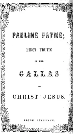 2. ^ a b Ledderhose, Carl Friedrich (1857). Pauline Fatme, First Fruits of the Gallas to Christ Jesus. Translated ... by Dr. Krapf. Revised and edited by J. E. Dalton.