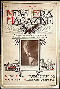 Hopkins' final notable works as a writer and editor occurred during the formation of the Boston-based New Era Magazine, which she created with Walter Wallace, whom she had previously worked with at the Colored American Magazine. The cover of the New Era Magazine included the subheading "An Illustrated Monthly Devoted to the World-Wide Interests of the Colored Race". Despite its attempts to provide a space appealing to the literary and political interests of African-Americans in the context of the segregation era, the magazine only published two issues in 1916 before ceasing existence and receiving very little recognition within scholarly discourse at the time.[1] This is often regarded as a failure on Hopkins' part, marking the quiet conclusion of her literary career.
