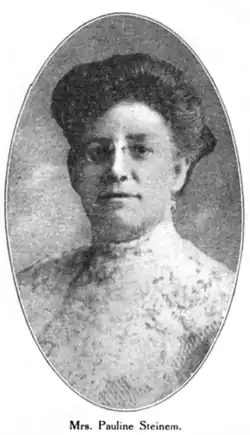 Pauline Perlmutter Steinem (August 4, 1864 — January 5, 1940) was a Jewish American suffragist born in Poland. In 1904, she became the first woman to be elected to the Board of Education in Toledo, Ohio, as well as to any public office there, thereby becoming in all likelihood, the first Jewish woman, and definitely one of the earliest to hold, elected public office in the United States.