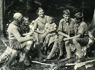 In 1923 he joined the Young Scout Organization as he saw it as an ideal form for raising the young people at that time. From then until World War II, he was the Scout Master of Slovenian Scouts. He attended several international scouting jamborees and conferences (Kandersteg, Switzerland, 1926; Arrow Park, Upton, Merseyside, England, 1929; Baden, Austria, 1931, Gödölö, Hungary, 1933) and thus came into contact with international scouting circles, further broadening the horizon. After the war, he was among the founding members of the Slovenian Scout Organization and the Senior Patrol Leader of two - Dragon and Grey Wolf - troops.