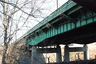 The Pawtucket River Bridge is a twin span, six-lane highway bridge that carries Interstate 95 (I-95) over the Pawtucket River in Pawtucket, Rhode Island. The original bridge was built in 1958 and rehabilitated in 1996.[2] The bridge was demolished in 2012-13 and replaced with a new deck arch bridge that was completed in summer 2013.[3] In November 2016, the bridge was officially renamed the James E. Doyle Pawtucket River Bridge in memory of the former mayor of Pawtucket, who died two months earlier.[4]