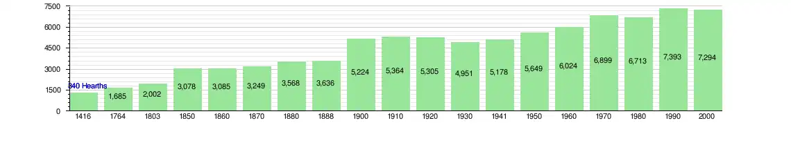 Payerne has a population (as of December 2020) of 10,069.[7] As of 2008, 32.0% of the population are resident foreign nationals.[8] Over the last 10 years (1999–2009) the population has changed at a rate of 15.4%. It has changed at a rate of 14.6% due to migration and at a rate of 1.7% due to births and deaths.[9]