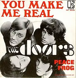 "Peace Frog" is a song by the Doors, which was released on their fifth studio album Morrison Hotel in 1970. Guitarist Robby Krieger explained that the music was written and recorded first, with the lyrics later coming from poems by singer Jim Morrison.[1] Although the song was never released as a single in the US, it was issued as the B-side of "You Make Me Real" in France.