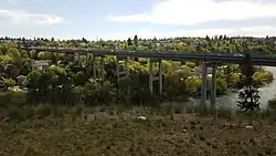 Due to the constraints of the terrain, there are only two roads leading into the historic district. Main Avenue connects to the center of Downtown Spokane from the east while Clarke Avenue runs west into the rest of the Peaceful Valley neighborhood and provides access to the adjacent West Hills and Browne's Addition neighborhoods.[4] A staircase connects Peaceful Valley with downtown, specifically the also-NRHP-listed Riverside Avenue Historic District, at Cedar Street.[5][3] Just west of that staircase, the Maple Street Bridge crosses over the gorge right through the heart of the district, connecting Downtown and the rest of the south side of the city with the West Central neighborhood and the rest of the north side.[4]