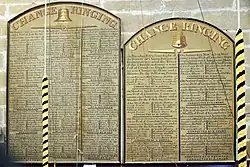 Many notable peals are also recorded on peal boards attached to the walls of the ringing rooms in the towers where they took place, and in the peal books of local change-ringing associations.