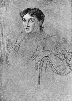 When she was nineteen, she married Reginald Walpole Craigie, by whom she had one son, John Churchill Craigie.[2] The unhappy marriage was dissolved on her petition in July 1895.[2] She was brought up as a Nonconformist, but in 1892 she was received into the Roman Catholic Church, where she remained, until her death, a devout and serious member.[2] Her successful career as a novelist and playwright also made her a popular socialite with associates as diverse as George Tyrrell, Aubrey Beardsley,[1] and George Moore, who had been her lover.[3]