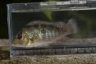 In Australia, it has been released into the Tweed River system, New South Wales, and the Swan River system, Western Australia, where it inhabits fresh and brackish water at a wide range of pHs.[5]