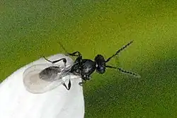 Pediobius is a genus of hymenopteran insects of the chalcid wasp family Eulophidae. Like their relatives, the larvae of these diminutive wasps are parasitoids of various arthropods (mainly insects). Some Pediobius are used in biological pest control.