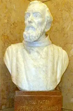 During the first meeting of the order, which was held in Rome on the 23 June 1587, Pedro Soriano was elected First General of the order. He died in August 1588.[1]
