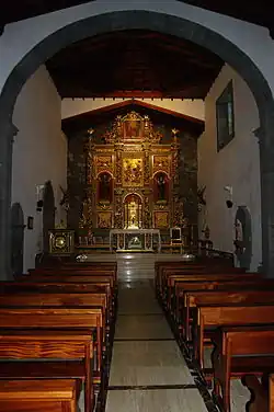 The identification of the saint with the aboriginal past of the Canary archipelago also contributes to all this, as he himself is a descendant of the original aboriginal people and his connection to various activities typical of the Guanche people, such as transhumance from coast to summit.[19] Among the iconographic elements What defines it in the Catholic saints is the Canarian shepherd's spear, which also has its origin in the aboriginal people of the islands.[2] All these elements, among others, have made the figure of San Pedro de Betancur one of the main symbols of Canarian religious and cultural identity.