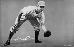 Reese's nickname originated in his childhood, as he was a champion marbles player (a "pee wee" is a small marble). Reese was born in Ekron, Meade County, Kentucky, and raised there until he was nearly eight years old, when his family moved to Louisville. In high school, Reese was so small that he did not play baseball until his senior year, at which time he weighed only 120 pounds and played just six games as a second baseman.[2] He graduated from duPont Manual High School in 1935, where he played for a legendary coach, Ralph Kimmel. He worked as a cable splicer for the Louisville phone company, only playing amateur baseball in a church league. When Reese's team reached the league championship, the minor league Louisville Colonels allowed them to play the championship game on their field. Reese impressed Colonels owner Cap Neal, who signed him to a contract for a $200 bonus.[2] While playing for the Colonels, he was affectionately referred to by his teammates as "The Little Colonel."[3]