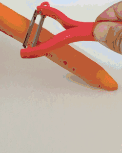 A peeler (vegetable scraper) is a kitchen tool, a distinct type of kitchen knife, consisting of a metal blade with a slot with a sharp edge attached to a handle, used to remove the outer layer (the "skin" or "peel") of some vegetables such as potatoes, broccoli stalks, and carrots, and fruits such as apples and pears. A paring knife may also be used to peel vegetables. The blade of a peeler has a slot with one side sharpened; the other side of the slot prevents the blade from cutting too far into the vegetable.