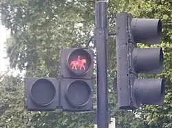 A pegasus crossing (United Kingdom; also equestrian crossing) is a type of signalised pedestrian crossing, with special consideration for horse riders. This type of crossing is named after the mythical winged horse, Pegasus. They are primarily used in the United Kingdom and Peru.[1]