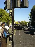 If the crossing is to be used by pedestrians and cyclists too, then a parallel, separate toucan crossing may be placed next to the pegasus crossing.[2][3]