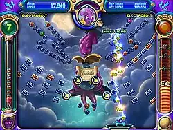 As of January 2010, three expansions have been released: a holiday theme, a spring theme and a pack with fan-art-based levels.[6] All three come with extra adventure levels and challenges. While these extra levels are on the PC and Mac versions of Peggle Nights, they have not been patched into the iOS version of Peggle. The Xbox Live Arcade version of Peggle received Nights content in the form of a downloadable expansion for the game on November 18, 2009.[1][7] The iPhone version of Peggle received Nights content as an In-App Purchase on October 4, 2010.[8]