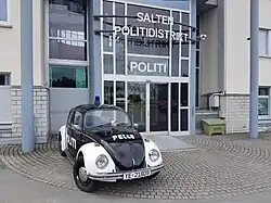 Pelle Politibil (known as Ploddy the Police Car in some English-dubbed media) is a Norwegian children's character and police mascot appearing in various Norwegian media.[1] The character is an anthropomorphic car with eyes as headlights, based on a black-and-white 1973 Volkswagen 1300.