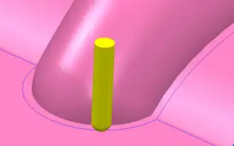 There are several alternate algorithms for generating pencil passes.[1] The method most commonly published in the academic literature involves creating tool surface offsets of the model surfaces and intersecting them to find the common line where the cutter would be in contact with two surfaces at once. An example of this implementation uses the ZMap method described by Park, et al.[2]