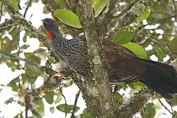 The Andean guan (Penelope montagnii) is a gamefowl species of the family Cracidae, in which it belongs to the guan subfamily Penelopinae. This bird occurs in the highlands (5,000 ft/1,500 m ASL and higher) of the Andes, from Venezuela and Colombia through Ecuador and Peru south to Bolivia and perhaps northwesternmost Argentina.[2]