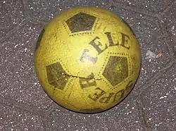 A penny floater [1][2] is a kind of cheap football commonly used by children in the Western world.[3] Its name derives from the fact that when they were first developed in the 1960s they cost a penny. The penny floater may have originated in Italy.[4] The floater part comes from the fact that as they are made of a thin layer of hardened plastic filled with air: their light weight makes them susceptible to floating or swerving with the wind.