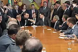 The original text was delivered by the President of Brazil Jair Bolsonaro to the President of the Chamber of Deputies Rodrigo Maia on 20 February 2019 to initiate the legal rite.[2] The reform proposal was approved by the Federal Senate on 22 October 2019, becoming law and coming into force automatically.[4] Among other details, the reform raises the retirement age and requires more time for civil service workers to receive a maximum retirement benefit.