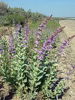 In English it is known by the common name sharpleaf penstemon. It is alternately known as the sand penstemon or sand-dune penstemon.[4]