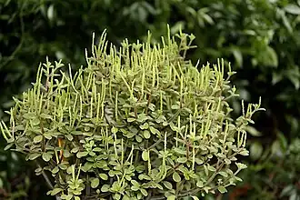 The inflorescence is a spike up to 5 cm (2.0 in) long, which may or may not be branched.[4][5]