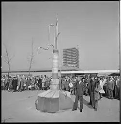 In 1969 a sculpture of Abramsen was donated by Siemens to the municipal of Rotterdam.[6] In 1971 Abramsen and Rob Maingay donated the people of Rotterdam a sculpture of their own as a political statement, that artists don't only live on the costs of the community. This was the sculpture called Baken.[7]