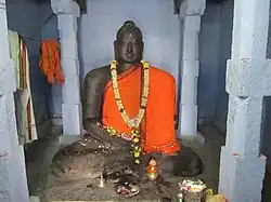 The Buddhist images are located in villages around Perambalur. There are two major images of Buddha in the village Thiyaganur. One of them is enshrined in a small pillared compound, while the other is located in a private farm. The private farm was converted to a Buddhist Dhyana Mandap (meditation centre) during 2013 enshrining the image at a cost of ₹ 50 lakhs with public contribution. It was modelled similar to the Buddhist shrine in Rajagiri, Bihar.[5] Both the images are 6 ft (1.8 m) tall in a cross legged seated posture and sported with coal black hair. Both the images are sported with a smile. Another image is found in the four way junction of Paravai, a village close to Thiyaganur. There is an image in Veeraganur Dalit Colony. Ogalur houses the image, which has been elevated to a higher structure in modern times by the villagers. The image of Ogalur is locally called "Dubai Buddha" as the locals believe that worshiping the deity helps in overseas travel.[6] There are many other images scattered in the villages, some which are in dilapidated condition.[2] The images are spread across three villages, namely, Paravai, Okalur and Perumathur.[7] As per experts, the image in Perumathur is an image of Jain Tirthankara.[6]