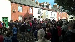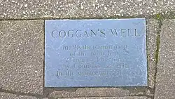 The procession's first stop is Coggan's Well in Fore Street, the traditional centre of the town where the stream emerges from underneath the road. Placing his staff in the water, the Bailiff of the Hundred claims the stream "for ever, for the sole use and benefit and as the right of the inhabitants of the town of Tiverton". Further proclamations are made at Castle Street, Townsend, Brickhouse Hill, Chettiscombe, the waterworks at Allers and finally at Norwood Common, where a plaque marks the actual source.[5] The ancient route now involves negotiating walls, private gardens and making use of many paths that are not public rights of way, some of which must be cleared on each perambulation.[6]