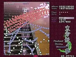 Touhou Youyoumu ~ Perfect Cherry Blossom (Japanese: 東方妖々夢 〜 Perfect Cherry Blossom; lit. "Bewitching Eastern Dream") is a 2003 vertically scrolling shooter bullet hell video game developed by Team Shanghai Alice. It is the seventh game in the Touhou Project series. Playable characters include returning protagonists Reimu Hakurei and Marisa Kirisame, with Sakuya Izayoi featuring in her first playable appearance. The story centers around the chosen heroine traveling to Gensokyo's Netherworld to stop Gensokyo from being stuck in an eternal state of winter when spring fails to arrive.