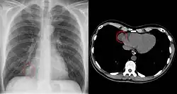 - ^ a b Park, Jin Wang; Jeong, Won Gi; Lee, Jong Eun; Lee, Hyo-jae; Ki, So Yeon; Lee, Byung Chan; Kim, Hyoung Ook; Kim, Seul Kee; Heo, Suk Hee; Lim, Hyo Soon; Shin, Sang Soo (2021). "Pictorial Review of Mediastinal Masses with an Emphasis on Magnetic Resonance Imaging". Korean Journal of Radiology. 22 (1): 139–154. doi:10.3348/kjr.2019.0897. ISSN 1229-6929. PMC 7772375. PMID 32783412.